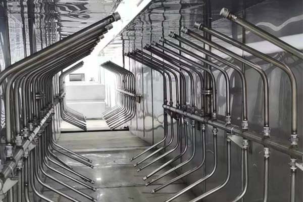 噴淋式聯(lián)合清洗機(jī)典型工序是:脫脂、水洗、表調(diào)、磷化、鈍化、水洗、純水洗。