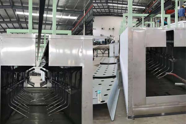 前處理生產(chǎn)線:涂漆的表面處理的常用設(shè)備是噴淋式聯(lián)合清洗機(jī),其清洗原理是借助于噴射機(jī)械力和化學(xué)作用,來(lái)完成去油、磷化、鈍化、清洗等工藝過(guò)程。